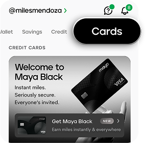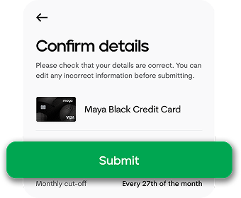 If you apply for a Maya Black Credit Card and aren’t eligible yet, we may offer you a Maya Black Express as an alternative. This lets you start enjoying Maya Black and all of its perks even if you’re still getting started (or starting over) in building your credit score. This option is offered to select users after they apply for a Maya Black Credit Card.