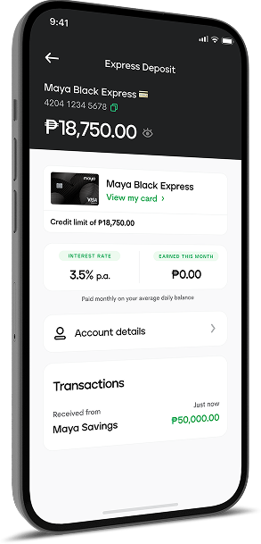 Once you make an Express Deposit, you’ll be given a Maya Black Express Credit Card which comes with all of the features and benefits of a Maya Black Credit Card. 80% of the amount you deposit will be used as the basis for your credit limit.