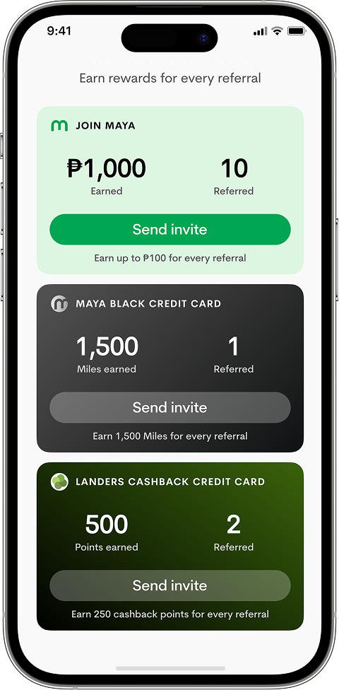 Refer using your code to earn 1,500 Miles and give your friend 1,000—managed seamlessly in the Maya app.