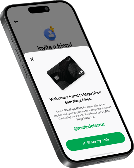 Tap Share my code to invite family and friends to get their own Maya credit card