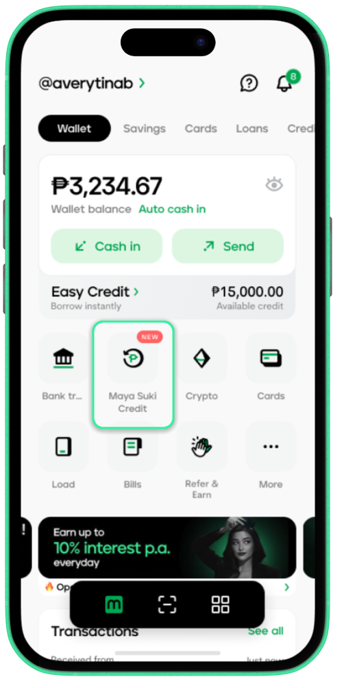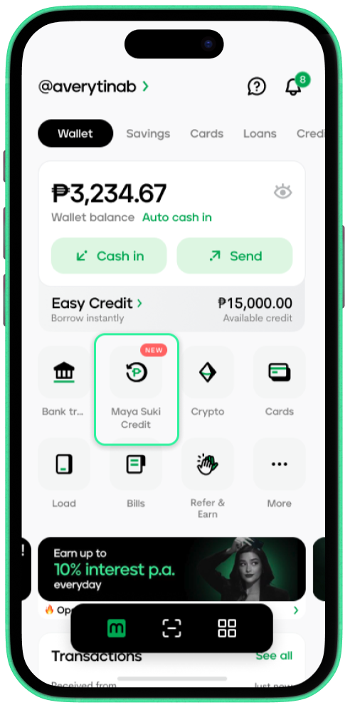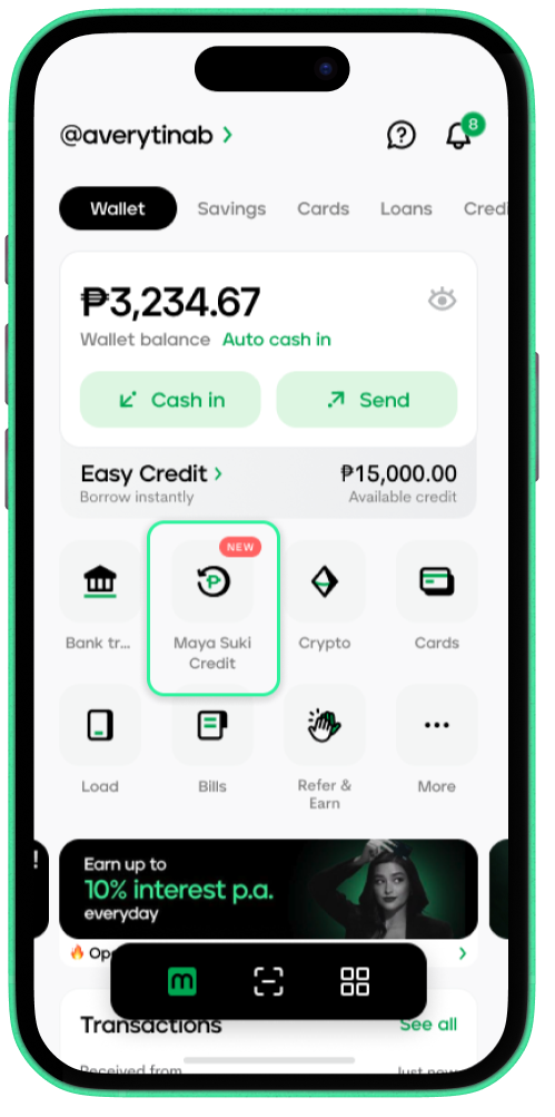You may pay your Maya Suki credit dues from your Maya app. Here’s how:
