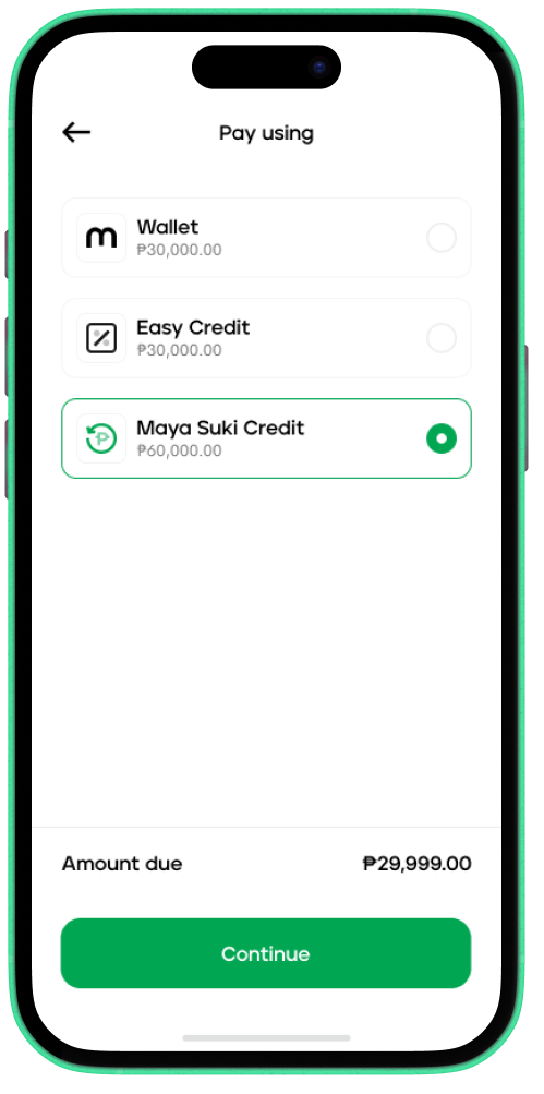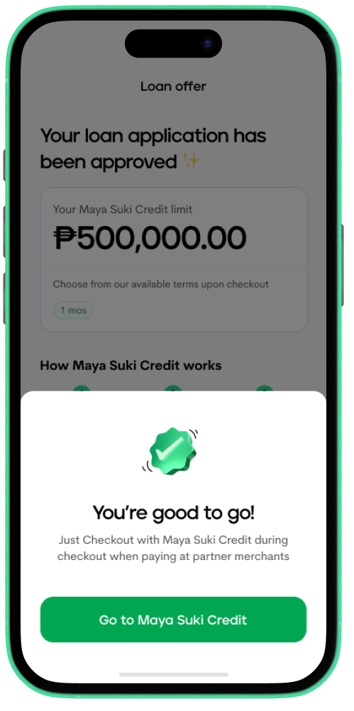 Note: Maya Suki Credit is available to select suppliers for now. Approval is based on credit evaluation. T&Cs apply.